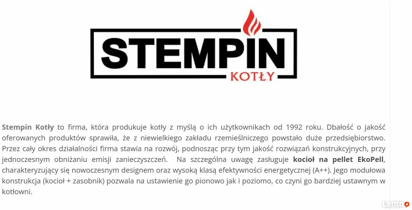 Kocioł pelletowy typu EkoPell 15KW STEMPIN 13300 zł - to nowoczesne urządzenie grzewcze z palnikiem KIPI na pellet. Bardzo ustawny w kotłowni, zwarta konstrukcja, prosty schemat instalacyjny, pojemny zasobnik - 8 worków pełny zasyp zasobnika.